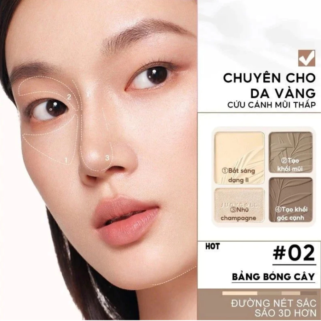 Bảng Highlight Tạo Khối Judydoll 4 Màu Highlight & Contour Palette là sản phẩm tạo khối kết hợp highlight đa năng đến từ thương hiệu Judydoll - Trung Quốc. Với kết cấu phấn mịn, dễ tán, giúp tạo khối và bắt sáng tự nhiên cho khuôn mặt. Bảng màu gồm tông sáng và tối hài hòa, phù hợp với mọi tông da, mang lại hiệu ứng da căng bóng, thon gọn và sắc nét. Công thức bám màu lâu, không gây cakey, cho lớp trang điểm bền đẹp suốt cả ngày.