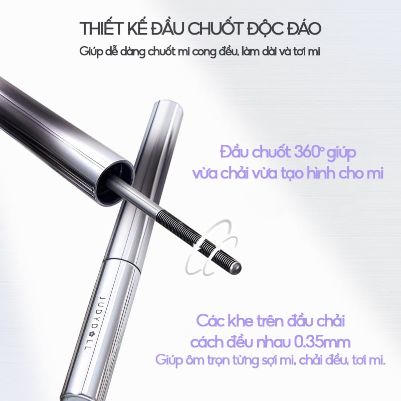 Mascara Judydoll Curling Iron sở hữu thiết kế đầu cọ thông minh, giúp tách từng sợi mi một cách hoàn hảo, đồng thời nâng và uốn cong mi từ gốc đến ngọn. Đầu cọ được nghiên cứu đặc biệt để bám đều lớp mascara lên từng sợi mi, tạo hiệu ứng mi cong dài tự nhiên mà không gây dính vào nhau. Chất công thức mềm mượt, dễ chuốt, giữ nếp mi lâu và chống lem trôi, ngay cả khi tiếp xúc với nước hoặc mồ hôi, giúp bạn tự tin suốt cả ngày dài. Mascara chống nước Judydoll còn có khả năng tăng khối lượng mi, tạo độ dày cho mi mà vẫn giữ cảm giác nhẹ nhàng, không gây cảm giác nặng mắt hay khó chịu khi sử dụng.