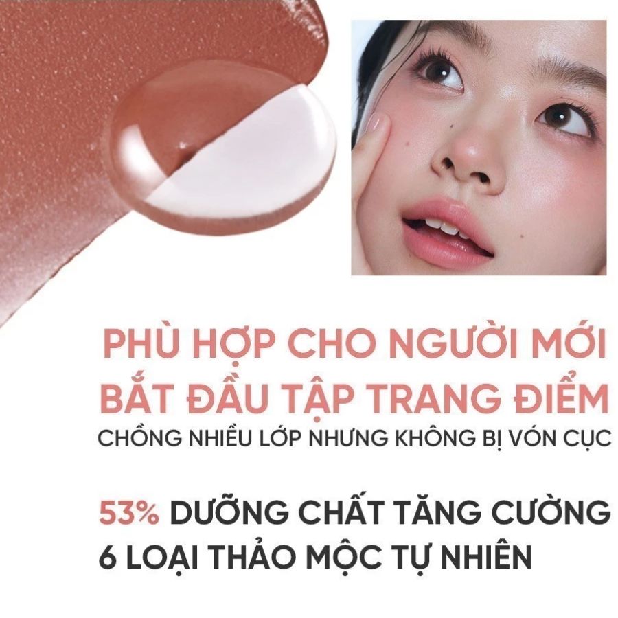 Với kết cấu dạng balm mang lại cảm giác mềm mịn như nhung, dễ tán đều chỉ với một lần chạm nhẹ. Khi apply lên môi hoặc má, chất kem tan chảy tự nhiên, tạo hiệu ứng mờ lì tinh tế mà không gây khô hay nặng da. Kết cấu “watery-matte” độc quyền giúp màu bám đều, mượt mà, không vón cục, không để lại vệt loang – dù bạn dùng cọ hay tán bằng tay.